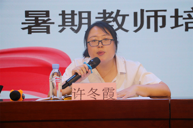 8月4日早上八点半,许冬霞主任首先做了培训动员讲话。她强调,这次培训的目的是要进一步加强教师队伍建设,提高教师教育教学能力,规范教职工思想态度与工作行为,她要求全体教师在此次培训中做到统一思想,明确培训目的;******务实,落实好会议内容;严明纪律,确保培训效果。