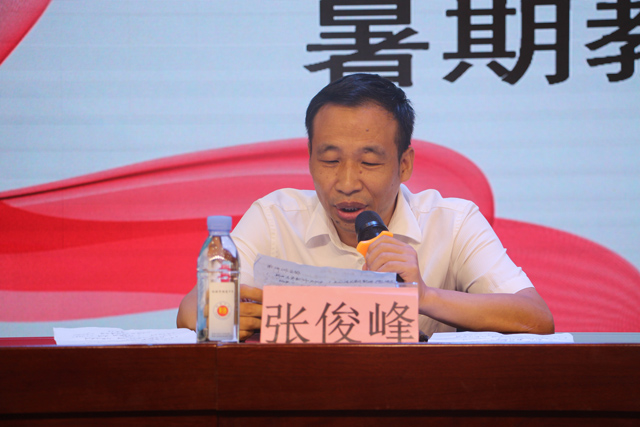 教研室张俊峰主任对新学年学校教研工作内容、方式方法、具体流程与细节等进行详细安排。要求各任课教师每月一篇读书笔记,按新课程标准撰写教案,考试后进行教学反思,撰写考后总结报告、对教学常规工作组织定时检查与不定时抽查。