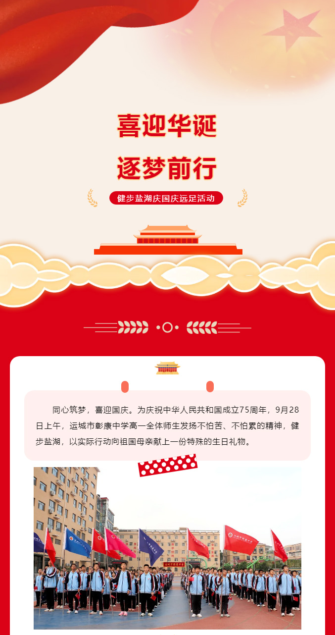同心筑梦 喜迎国庆——运城市彰康中学举办健步盐湖庆国庆远足活动