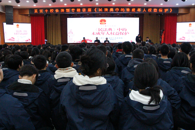 为了进一步增强青少年法制******意识,引导学生树立良好的法制观念,传递社会正能量,弘扬社会新风尚,营造良好的校园氛围。2020年11月24日,我校特邀请到了运城市人民检察院法律政策研究室主任兼我校法治副校长黄雷平,为我校高一二师生进行了“民法典中的未成年人 权益保护”法制宣讲。