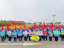 以笔为桨 竞逐词海——运城市彰康中学高一年级百词斩活动燃动操场