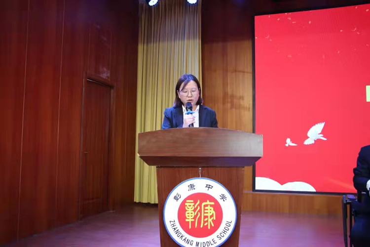 教师代表杨鸽发言:她告诫同学们一百天要善于每日反省,及时查找自身的不足,不断地完善自我,充满信念,奋勇向前。