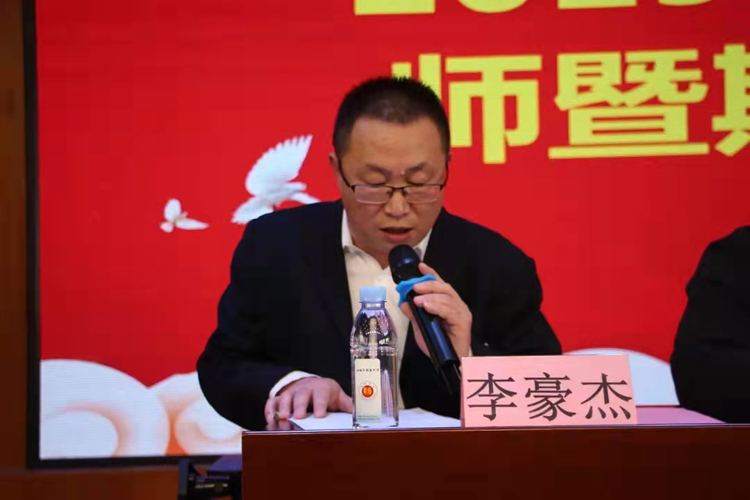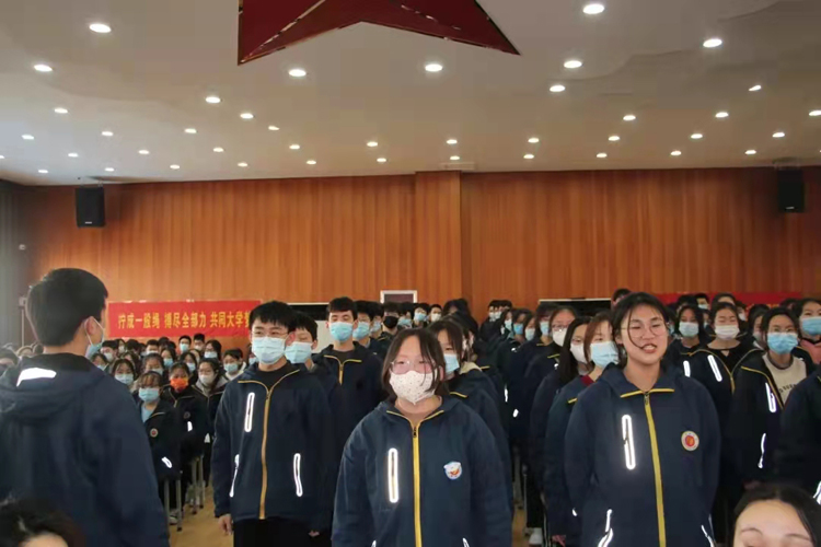 李豪杰主任代表高三年级组表态发言:咬定常规训练,加强对高考方向的学习和研究,探索科学有效的复习策略,做透做细知识传输的细节工作,增强后期复习的针对性和实效性,减少学生学习的盲目和偏差,与学生相伴一百天,奋斗一百天,共同进步成长一百天!