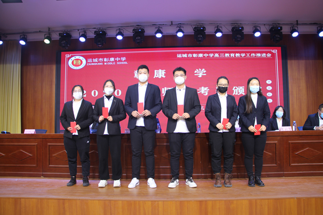 “为了学生的理想,为了家长的重托,为了学校的发展,我们将尽职尽责,脚踏实地,全力以赴,用我所长,倾我所有,尽我所能,帮助每一个学子在高考舞台上大显身手,鲤鱼跳龙门,成就人生梦想,为彰康高考再添壮丽的一笔!”
