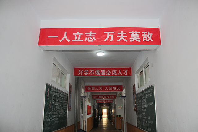 道道红色的标语,似战旗猎猎。清晨六点,天蒙蒙亮,学子们朗朗的读书声早已在楼道回响交织。